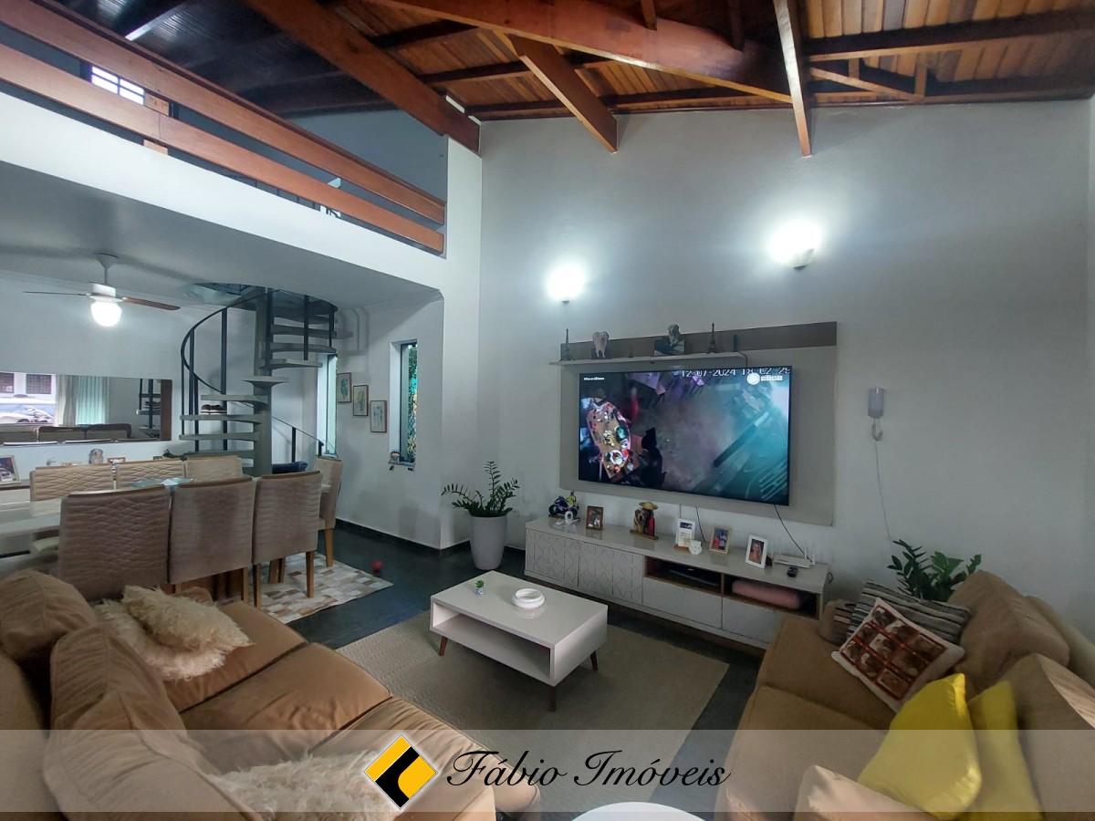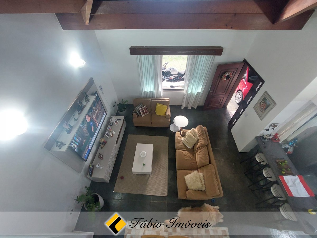 Sala ampla com pé direito alto para 2 ambientes, cozinha balcão americano integrado, armários embutidos, wc social, 3 dormitórios sendo 2 suítes, mezanino espaçoso, wc e quarto de armazenamento.