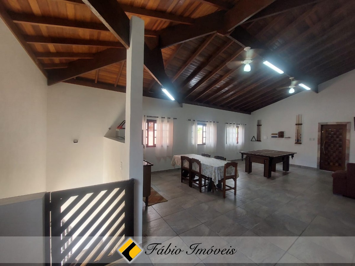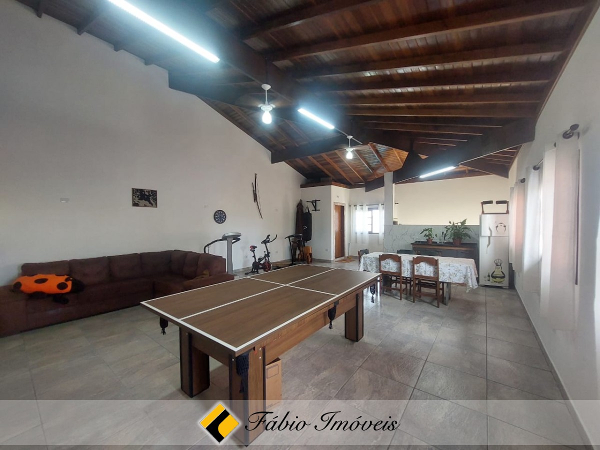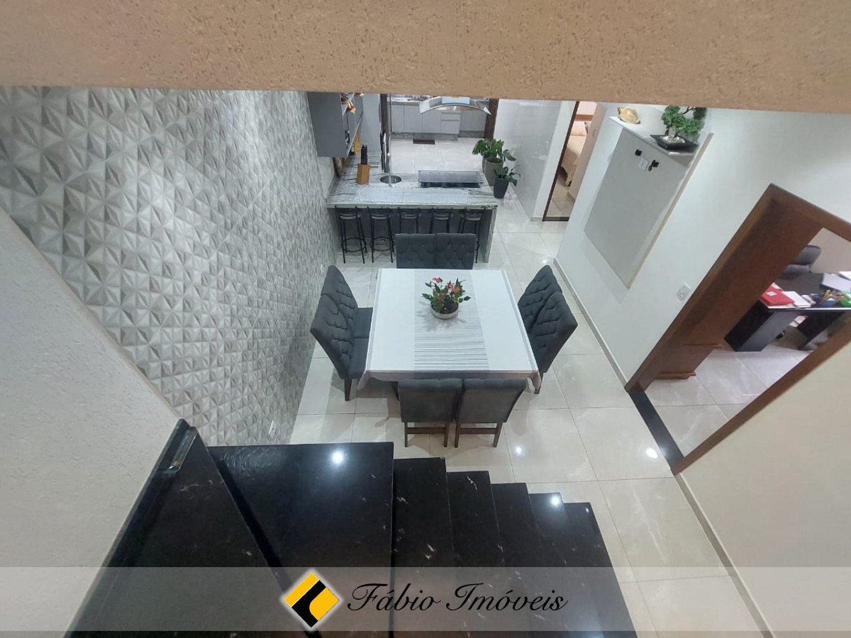 No piso superior, sala de tv, 1 suíte master com closet e hidro, varanda, salão de jogos/ festas, com pia e wc e escada em acesso a parte externa.