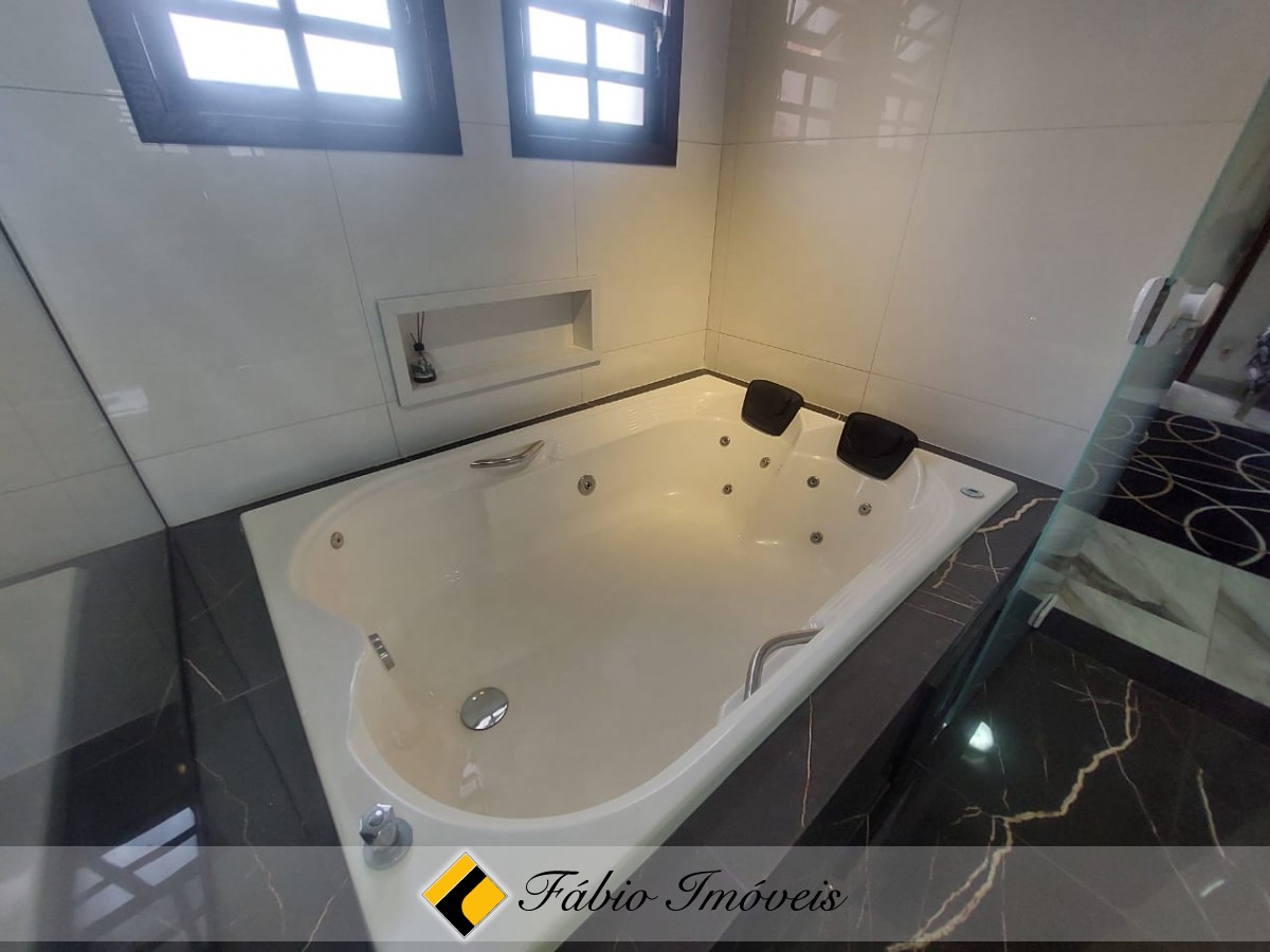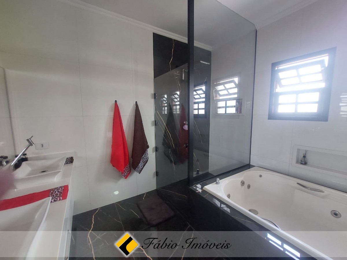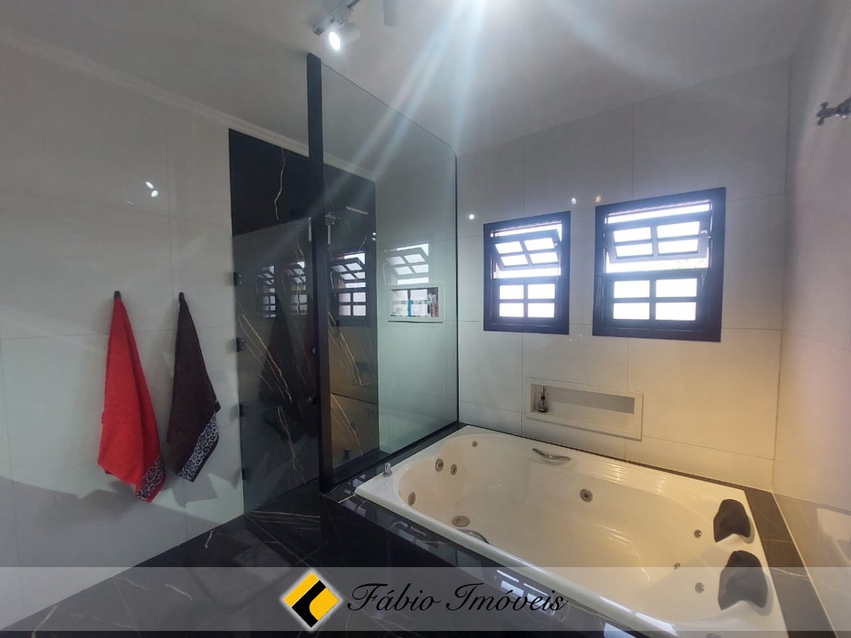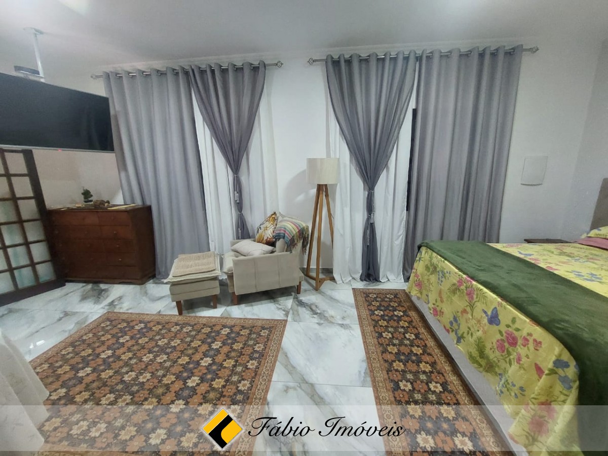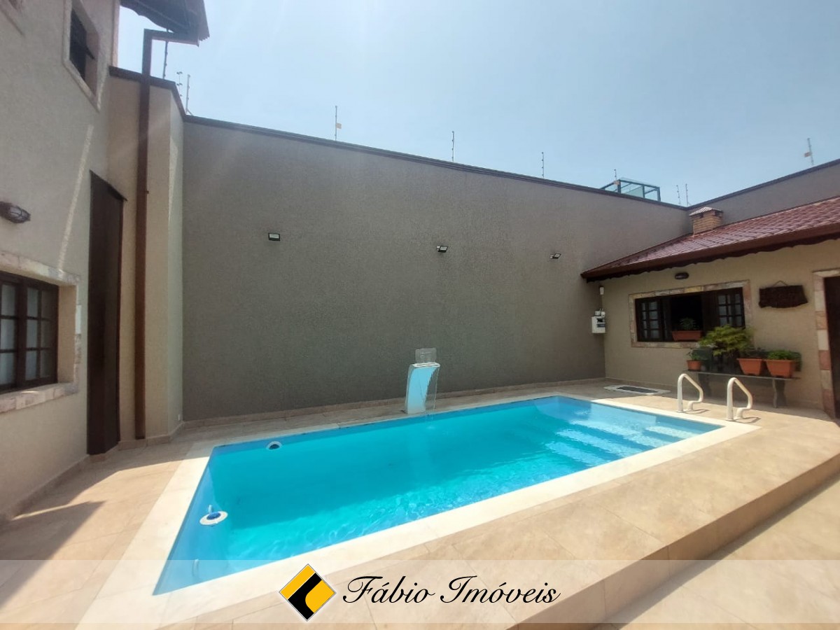 Quintal espaçoso, piscina com cascata, garagem para 6 autos, portão automático, alarme monitorado e cerca elétrica.