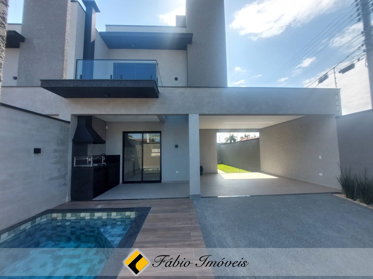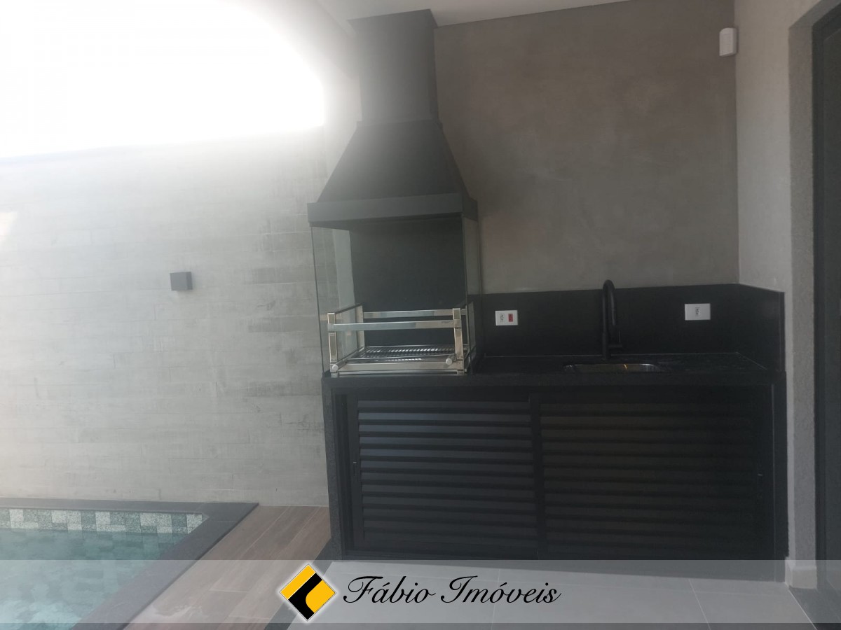 Ainda no piso térreo, espaço gourmet com churrasqueira, pia, piscina com cascata, wc externo, portão automático, quintal confortável, garagem para 2 autos, alarme monitorado e cerca elétrica.