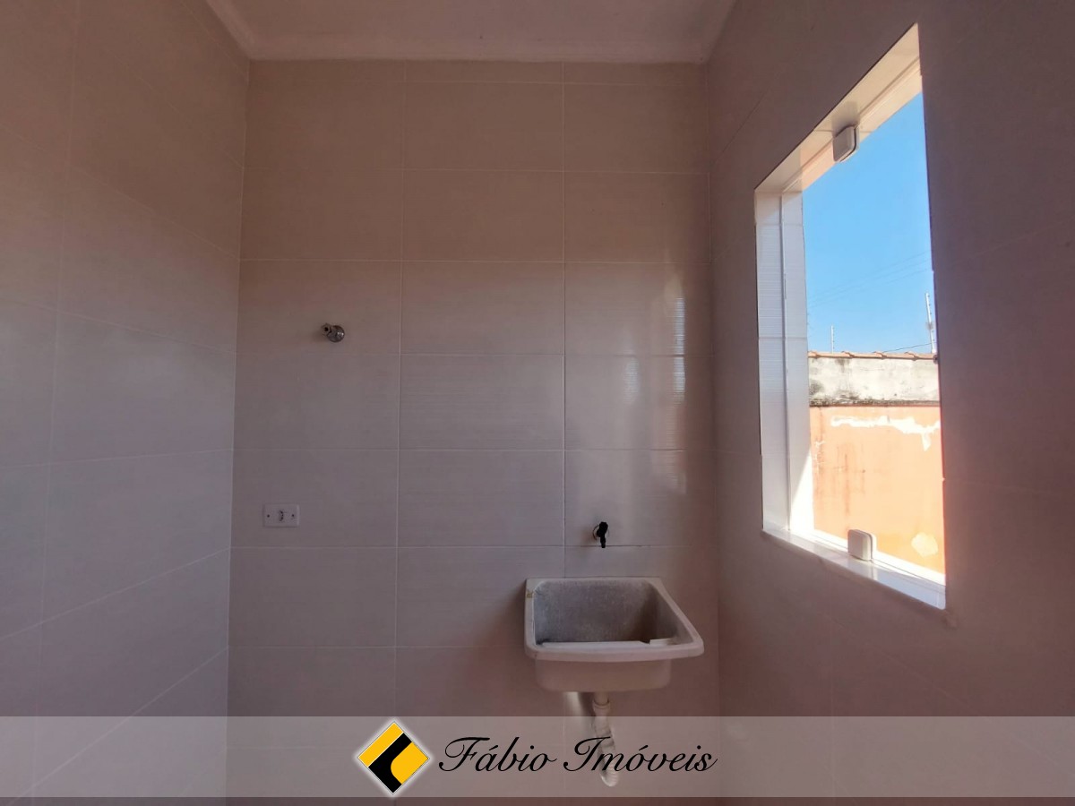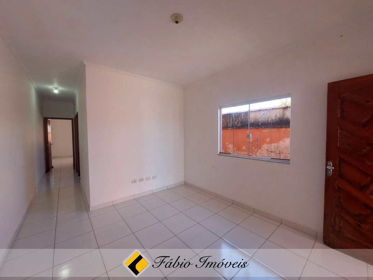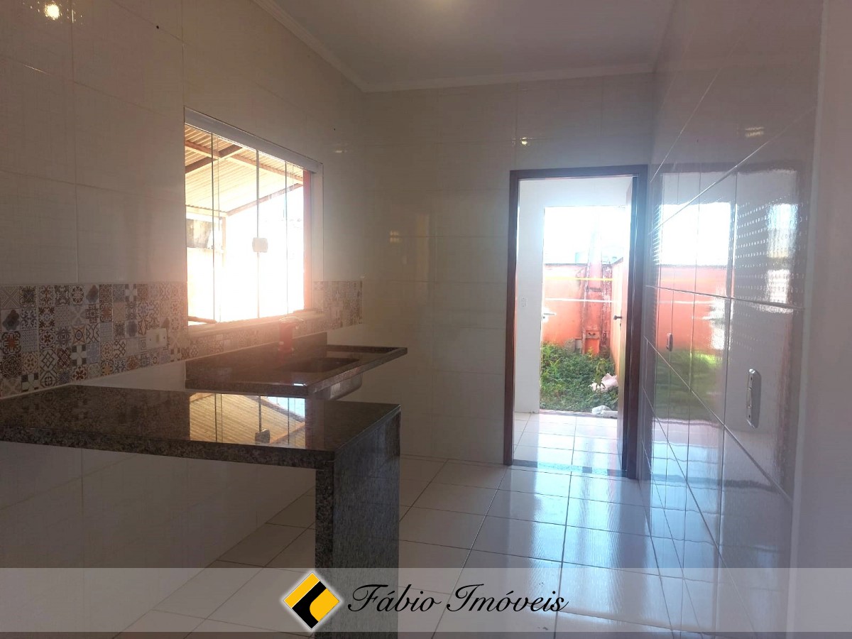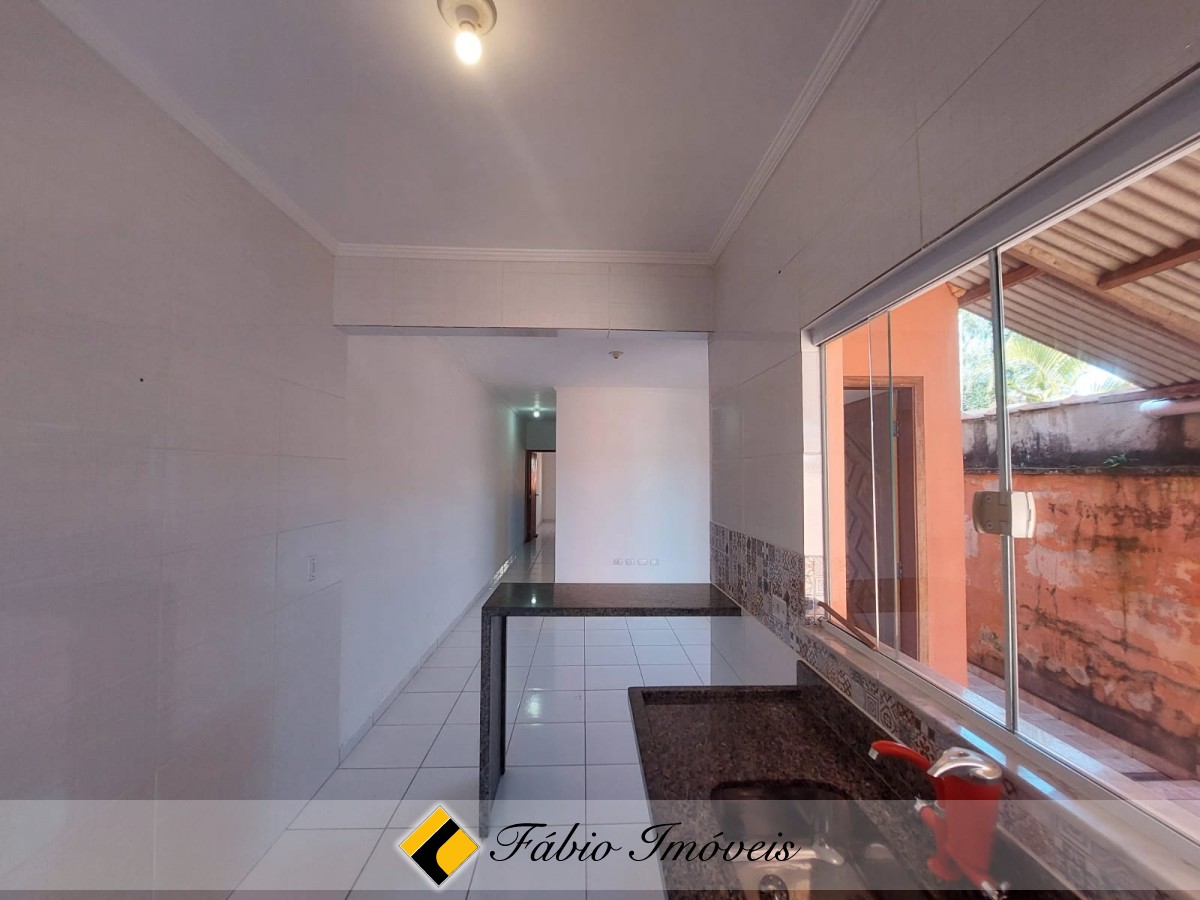 Casa com sala, cozinha balcão americano, lavanderia anexa, wc social, 2 dormitórios sendo 1 suíte, jardim e garagem para 2 autos.